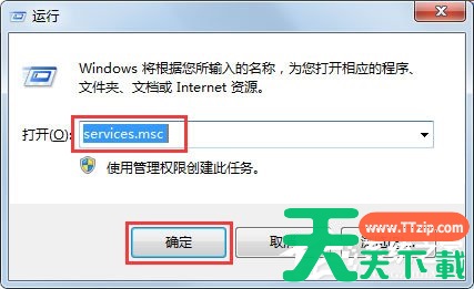 2、在运行程序框里面输入:services.msc,点击回车即可调出服务窗口;