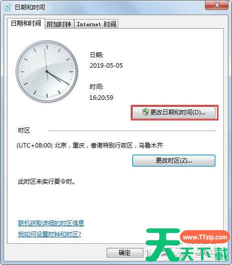 2、进去日期和时间界面之后,首先需要修改时区,点击更改时区;