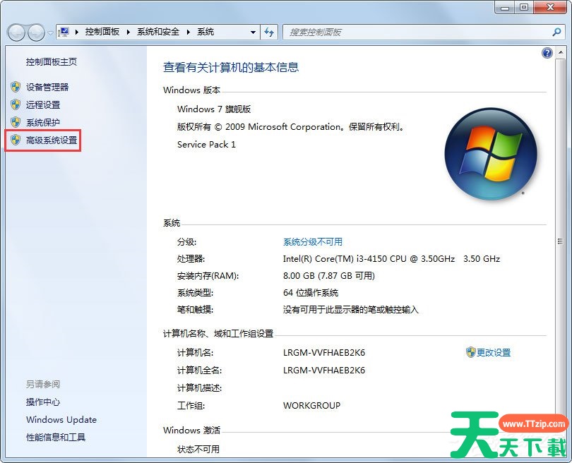 2、在电脑属性页中,点击左边栏中的高级系统设置选项;