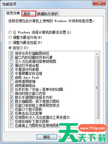 4、在性能选项页面中,点击中间的那个高级的选项标签;