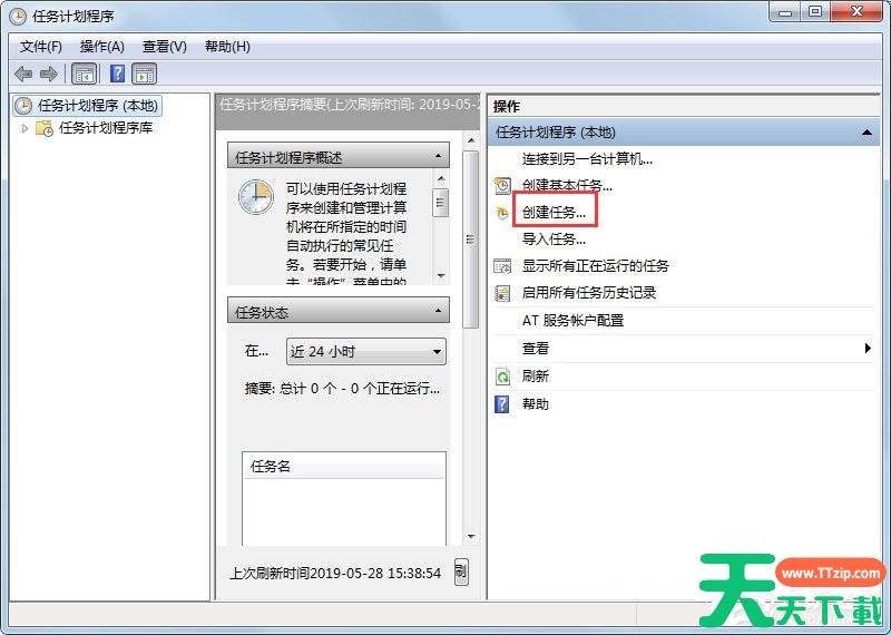 4、然后大家就可以建立自己的计划任务,在页面右侧的“操作”下面,鼠标击“创建任务”字样;
