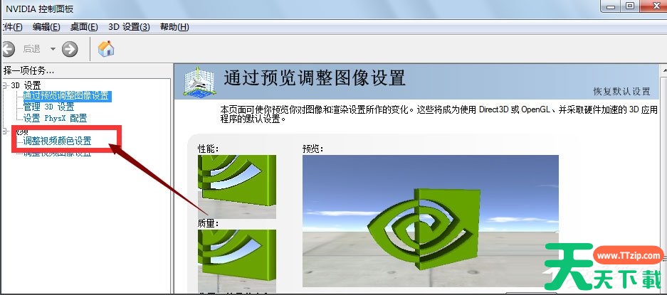 5、在NVIDIA控制面板页面,找到调整视频颜色设置,点击进入;