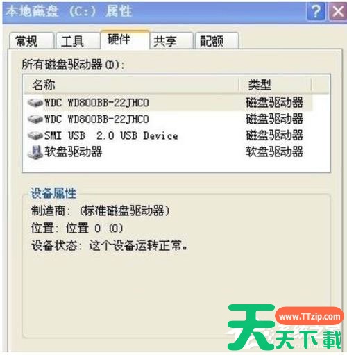 1、左键双击桌面我的电脑,右键点击:C盘-属性 - 硬件;