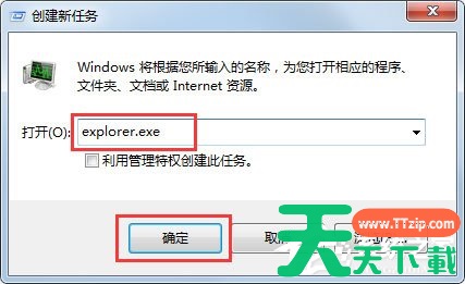 5、在弹出框输入explorer.exe,然后单击【确定】;