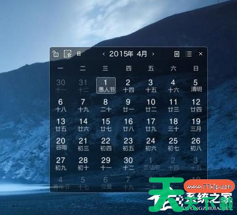 3、在设置界面——桌面设置中找到添加桌面日历点上它,这样就打开了桌面日历。可以通过鼠标移动桌面日历,决定放置的位置;