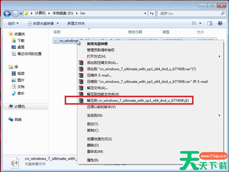 1、首先把系统下载到本地硬盘上,下载完成后,找到系统文件,按右键把下载好的系统解压;