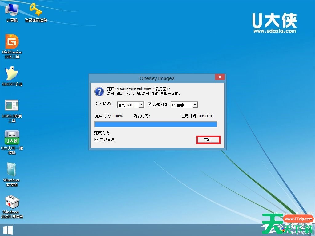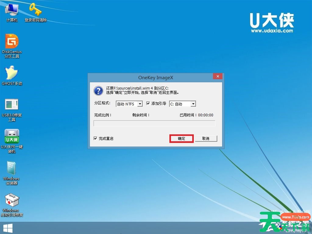 第二步:进入U大侠Win8PE系统后运行“U大侠PE一键装机”工具,安装系统!