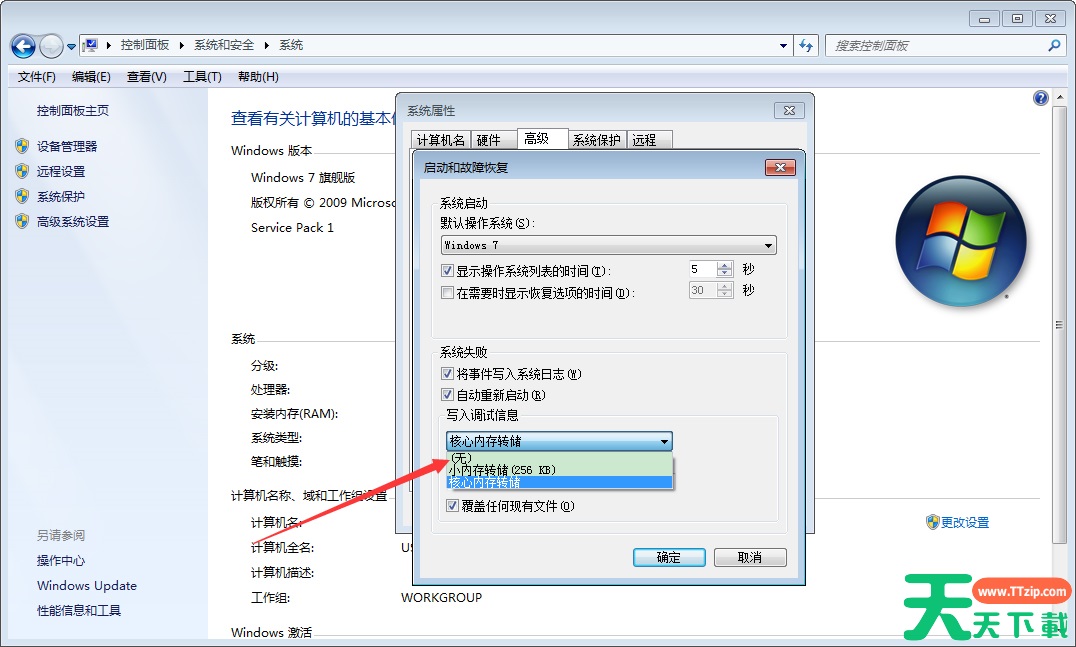 众所周知,系统错误内存转储文件尽管是专业人员排除系统错误的主要依据,但其对一般用户并没有什么用处,且会占用一定的硬盘空间。那么,在win7系统中该如何禁止生成系统错误内存转储文件呢?不清楚具体操作的朋友,可以参考天天下载Ttzip分享的方法。