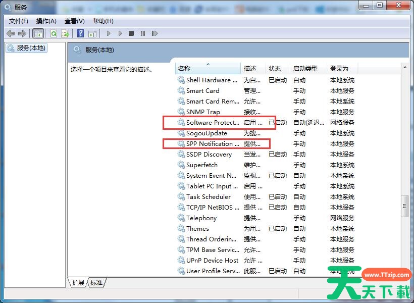 第二步、进去之后,在右边找到“Software Protection”服务和“SPP Notification Service”服务,双击打开。