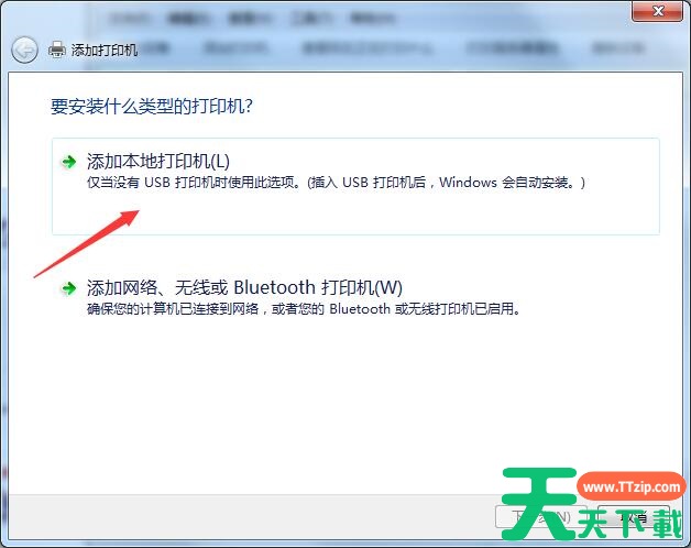 3、接着选择“添加本地打印机”,按一下;