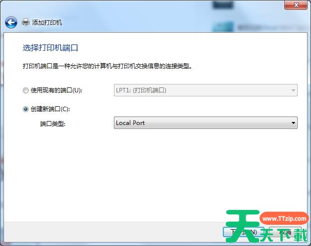 4、选择“创建新端口”选择“local port”这一项;