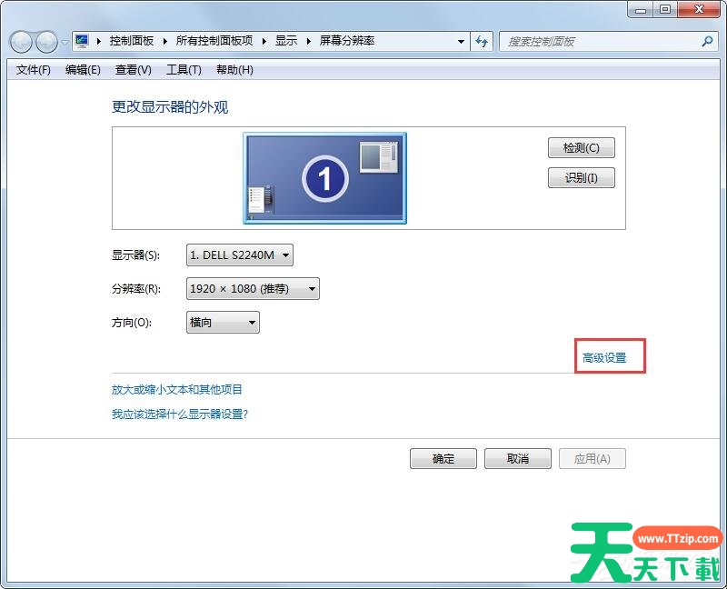 2、进入屏幕分辨率后点击右下角的“高级设置”;