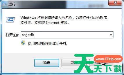 1、开始→运行(也可以同时按win+R键完成)并在打开的窗口中输入“regedit”;