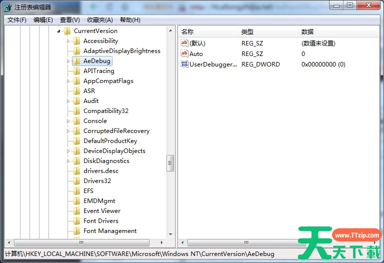 [HKEY_LOCAL_MACHINE/SOFTWARE/Microsoft/WindowsNT/CurrentVersion/AeDebug]