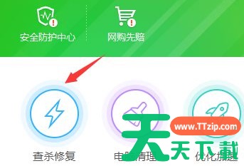 1、打开电脑安全软件,进入主界面,点击【查杀修复】;