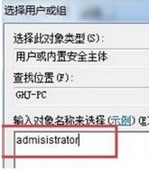 5、在弹出的对话框中将相应的账户添加进去,比如当前天天下载Ttzip使用的是“administrator” 那么输入该账户,添加进去即可。