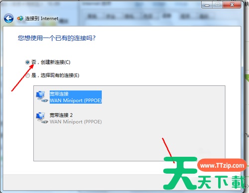 4、这里选择“否”创建新连接,从这步开始win7系统无线网络连接设置就正式开始了。