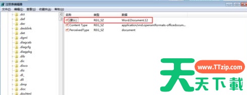 5、双击(默认)一项,将其改为 Word.Document.12;