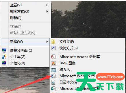 6、关闭注册表,刷新桌面,这是我们发现右键新建中Word神奇的回来了;