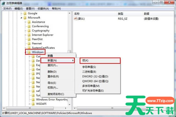 3、接着右键windows文件选择新建项,并将其命名为“Psched”。