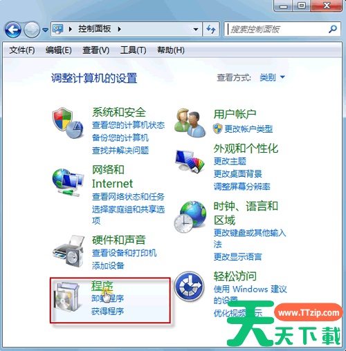 1、在开始菜单中,单击“控制面板-》程序”。