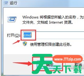3、然后再“打开”后面的输入框内,输入“cmd”,在点“确定”;