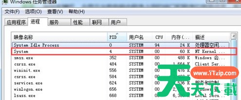 8、最后,选择PID为4的进程,然后鼠标右键,选择结束进程;