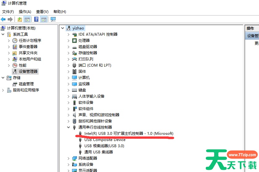 2、右键点击“通用串行总线控制器”项目,在弹出的下拉菜单中选择“扫描检测硬件改动”,拔出USB设备重新接上,查看是否可以使用。