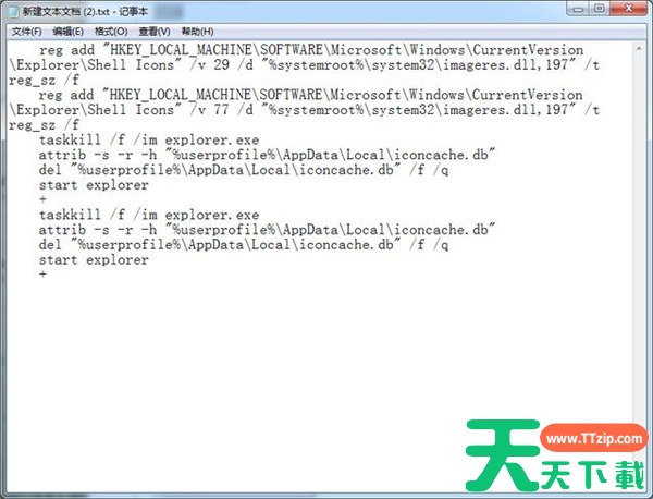 reg add “HKEY_LOCAL_MACHINE\SOFTWARE\Microsoft\Windows\CurrentVersion\Explorer\Shell Icons” /v 77 /d “%systemroot%\system32\imageres.dll,197” /t reg_sz /f