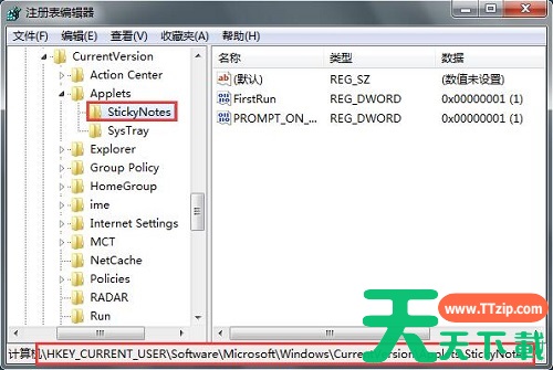 HKEY_CURRENT_USER\Software\Microsoft\Windows\CurrentVersion\Applets\StickyNotes