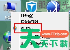 首先在win7旗舰版桌面右键点击“计算机”,选择“管理”选项。