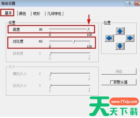2、在高级设置的基本设置中可以拖动亮度或者对比度这里的滑动按钮。