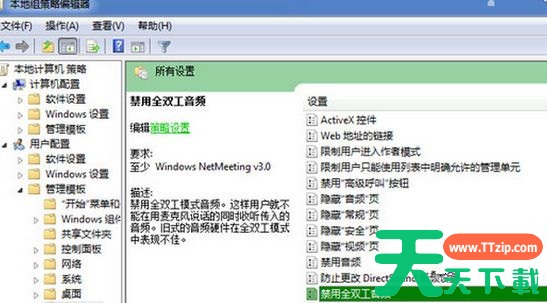 如果大家想要关闭win7旗舰版系统的全双工音频,就可以采用天天下载Ttzip上面介绍的方法来操作,当然同样的,如果大家想重新启用的话,只要把“已启用”改为“已禁用”状态就好了。