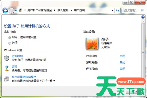 Win7旗舰版怎么限制孩子的上网时间?我们在家里有孩子的时候非常害怕孩子沉迷与网络,不把心思放在学习上。所以会想方设法的限制孩子上网。那么我们怎么使用电脑的自带的功能限制孩子上网呢?下面天天下载Ttzip就带着大家一起看一下吧!
