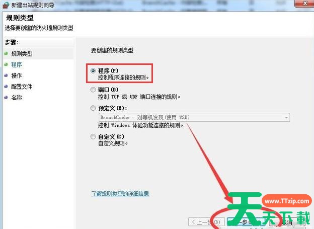 6、选择“程序”,然后点击“下一步”。