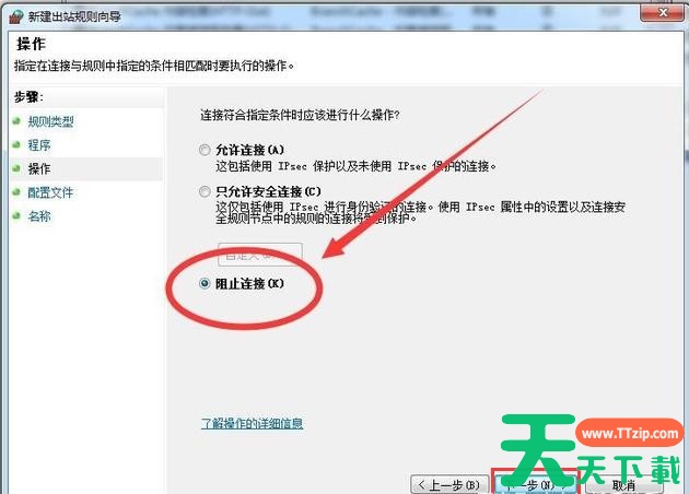 9、点击“阻止连接”,按提示点击“下一步”即可。