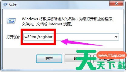 打开“运行”对话框(通常按Win+R组合键就可以打开),然后输入“w32tm /register”进入注册。