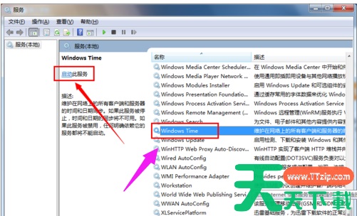 找到“Windows Time”服务,选中并点击“启用”按钮,开启该服务。