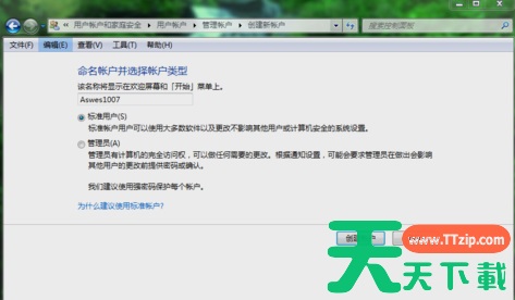 3、再点“创建一个新账户”。接着给这个账户命名。