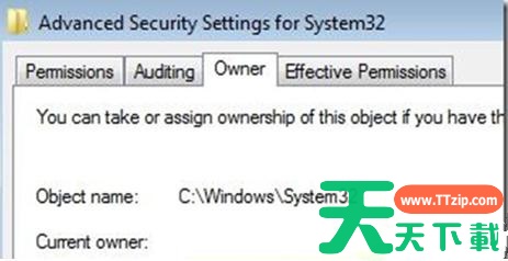 3、在弹出窗口中切换到“所有者”标签,便可看到目前的“所有者”是“信任安装”;
