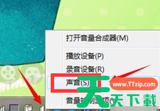 右键点击桌面右下角喇叭图片,左键点击声音。