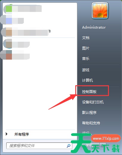 1、打开电脑,点击桌面左下角的开始菜单,选择控制面板,