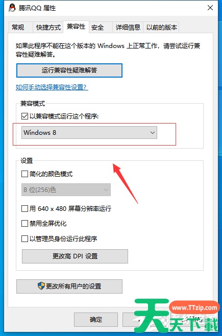 4、这时,我们只需要把它的兼容性模式改成win7系统就行,并点击“确定”这样一来问题就解决啦。