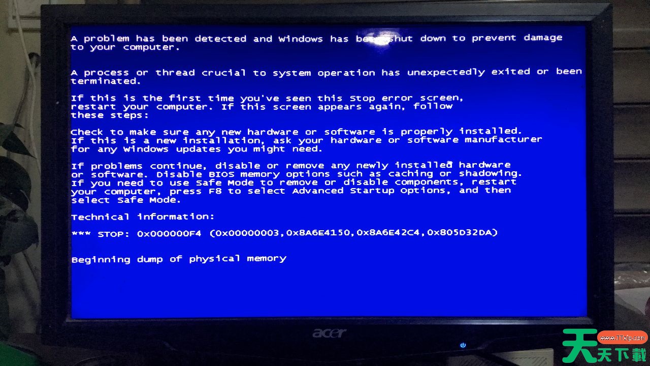 蓝屏代码0x000000f4解决方法