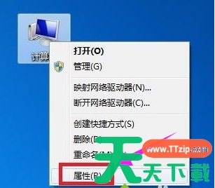 在桌面“计算机”图标上面,点击右键,选择“属性”。