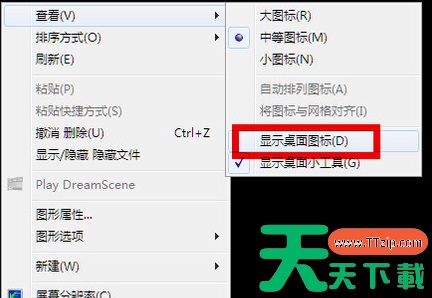 在桌面上点击右键,点击:查看,显示桌面图标。