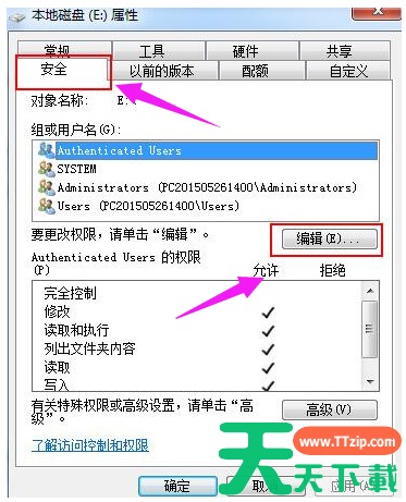 当看到“e盘权限”页面中的“组或用户中”新增了“everyone”这个用户,选择“everyone”并在“完全控制”前面打钩,设置完成后,按下“确定”即可。