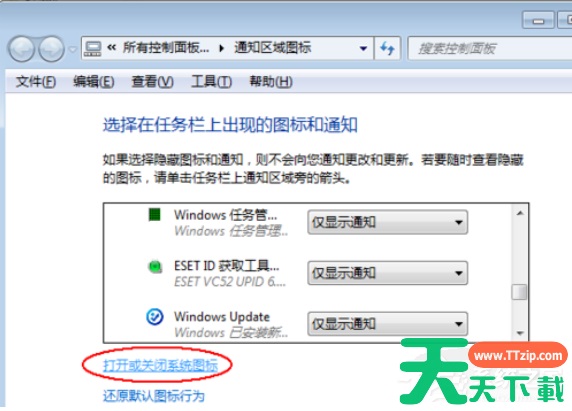 3、再点击“打开或关闭系统图标”。