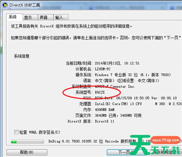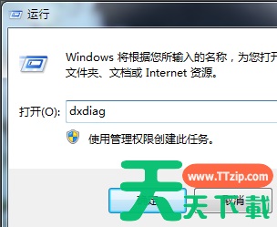 输入命令【dxdiag】并确定启动DirectX诊断工具。