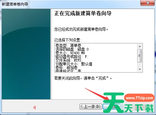 6、之后进入到新建卷向导中(图1),点击下一步,进入到盘符选择(图2),之后进入到“格式化”阶段(图3),选择是否格式化之后,点击“下一步”,最后点击“完成”(图4)。即可完成新建分区。